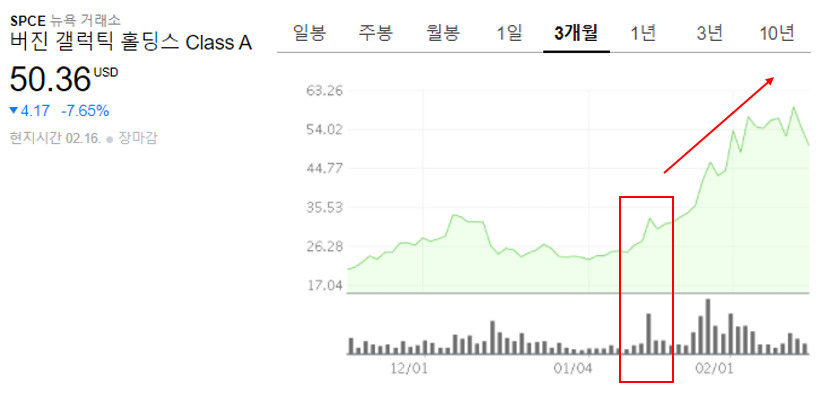 지난 1월 리처드 브랜슨의 인터뷰 내용을 보면 조만간 버진 갤럭틱 시험비행이 있을 것이고 몇 달 내 본인이 버진갤럭틱 비행에 탑승할 것이라고 언급하였습니다. 버진갤럭틱은 상장사이기 때문에 본인의 발언이 주가에 영향을 줄 수도 있고, 잘못하면 법적인 문제도 발생할 수 있기에 근거 없이 저런 말을 하지는 않았을 것입니다.